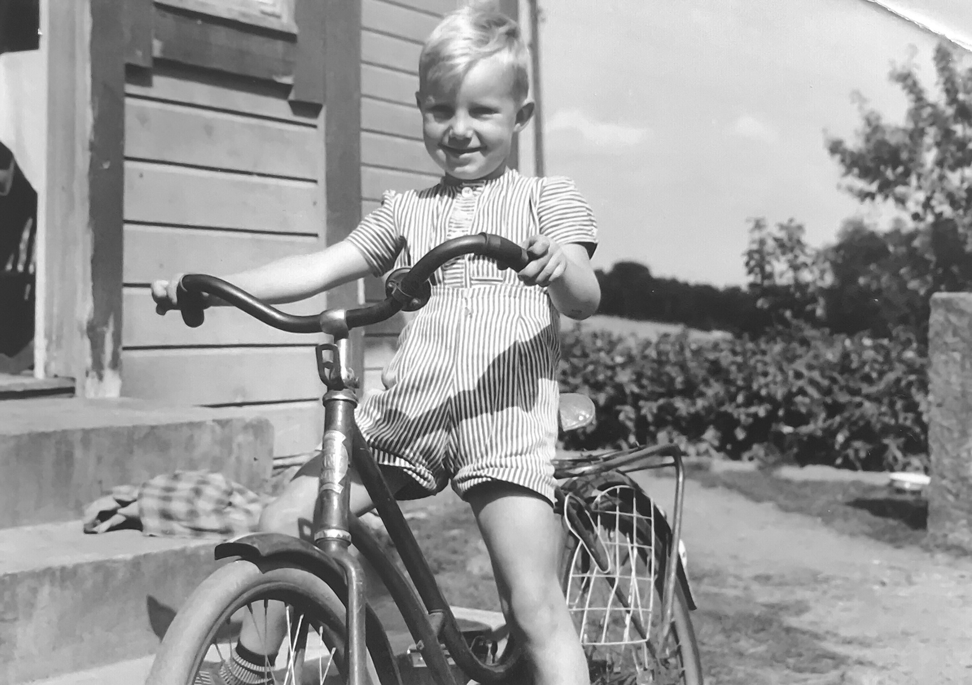 Min första cykel köpt hos ............ och lärde mig cykla i Sparrarp hos Astor och Ella Nilsson, Ella var min mammas kusin. Vad jag kommer ihåg var det Astor som fick fart på mig.